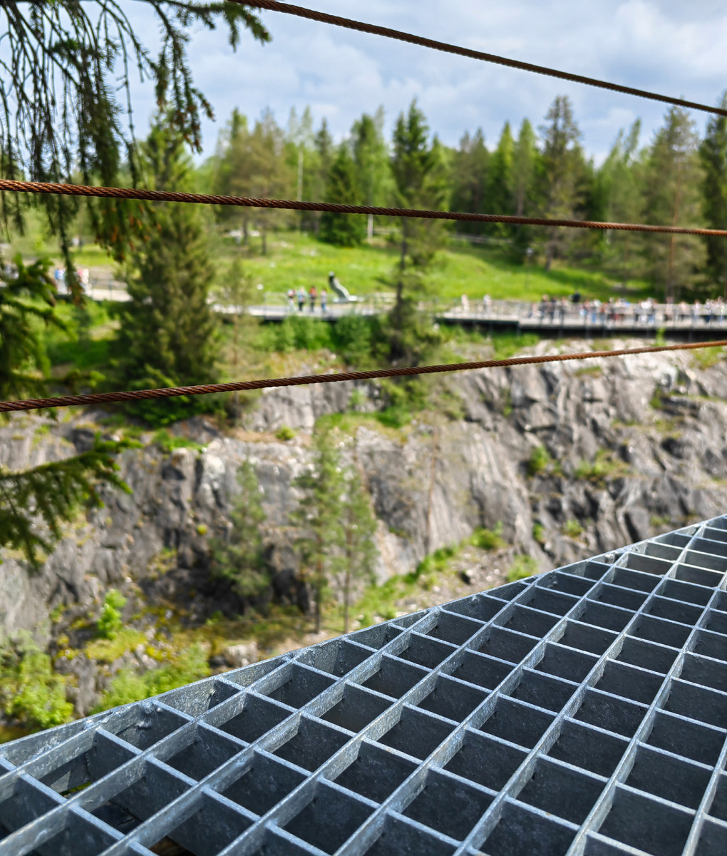 Решетчатый настил в качестве смотровой площадки, переходов в Горном парке «Рускеала»