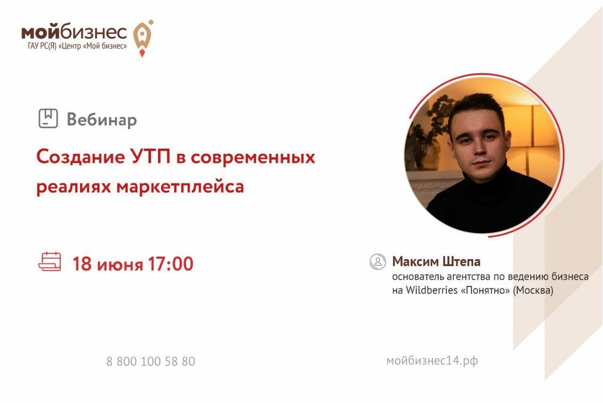 Центр «Мой Бизнес» приглашает принять участие в вебинаре «Создание УТП в современных реалиях маркетплейсов» Хотите узнать, как заставить покупателей выбрать именно ваш товар? Расскажем на БЕСПЛАТНОМ вебинаре: «Создание УТП в современных реалиях маркетплейсов». Программа: - Почему именно сейчас важно иметь качественную уникальность - Какие УТП можно использовать у своих товаров - Где черпать идеи для создания уникальных идей ️Спикер: Максим Штепа, основатель агентства по ведению бизнеса на Wildberries «Понятно» (Москва). ️Дата: 18 июня 2025 года Время: 17:00 (по якутскому времени) Ссылка для регистрации: https://clck.ru/3MY7Kd Развивайте бизнес с нами! @moibizsakha