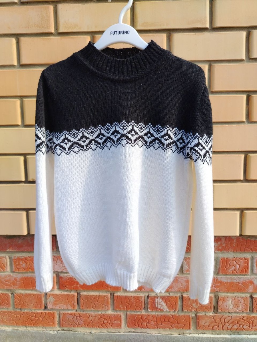 джемпер в подарок внуку связан из полушерсти. Лёгкий, мягкий, тёплый, стильный. Горловина выполнена кеттлевкой в карман, поэтому внутри изделие выглядит эстетично. Все детали соединены вручную. Матвейка очень рад. Ждал с нетерпением, на примерках не капризничал, наоборот мерял отдельно руква, дожидаясь когда бабушка закончит 😁.