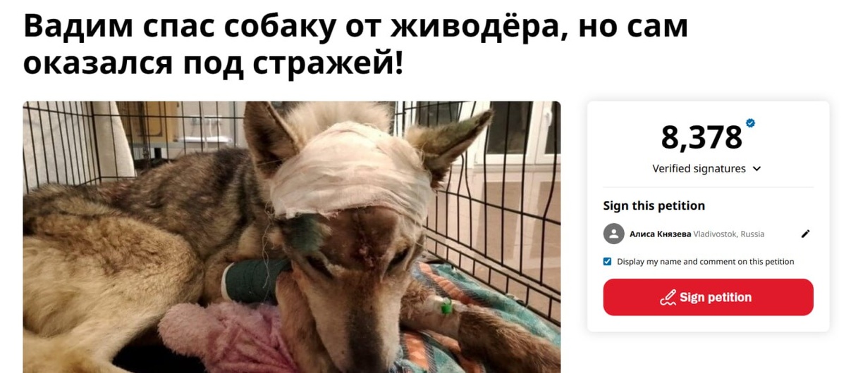 Петицию в защиту приморца, который ударил соседа за жестокое обращение с собакой и попал за это в СИЗО, за два дня подписали больше 8 тысяч