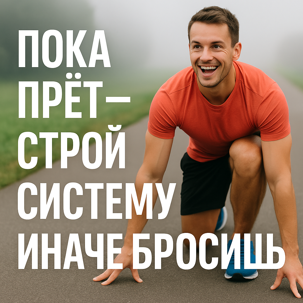 Ты начинаешь что-то новое. Азарт, вдохновение, мотивация бьют ключом. Кажется — «в этот раз точно получится». Но проходит неделя — и ты уже не так уверен. День пропустил, второй… и всё. Ещё один проект в папке «не дожил до привычки». Так работает энергия новизны: она вспыхивает ярко, но быстро гаснет. И вот что важно — именно на этом пике не «лететь по наитию», а строить систему. Если ты хочешь сохранить то, что начал, — читай дальше. Любое новое дело сначала даёт всплеск дофамина: тебе интересно, ты гордишься собой, получаешь быстрые «награды». Но мозг быстро адаптируется. Без системы тебе придётся каждый день заново решать: делать или не делать. И чаще всего — не делать. Пример: Катя начала бегать по утрам. Первые 3 дня она вставала без будильника — столько было сил. На 4-й день проспала. На 5-й — решила отдохнуть. Через неделю кроссовки стояли в углу. 🔹 Что делать: 5 шагов, пока прёт Чтобы сохранить начатое — используй энергию старта для настройки системы: 1. Сразу задай ри