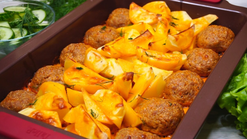 Простое и при этом очень вкусное блюдо, как раз то, что нужно и готовится совсем просто, все подготовили и в духовку. Котлеты нежные, картошечка ароматная.