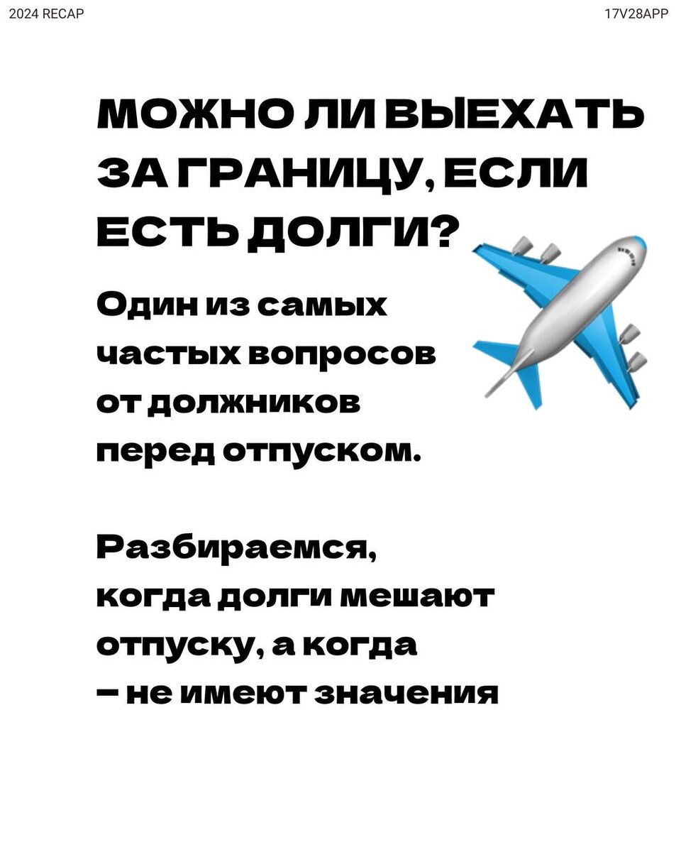 Внимание❗️Не покупаете путевки, пока не узнаете это… Многие должники не знают - есть ли у них запрет на выезд за границу 🤷🏼♀️ Поэтому, большинство идут двумя путями: 1️⃣Спрашивают у своего пристава. И, даже если, по ошибке ареста не было - запрет тут же появляется. 2️⃣Покупают путевки на свой страх и риск: едут, а на границе их не выпускают. Ещё некоторые используют вариант «договориться с приставом», не зная, что он перестал работать после введения ротации базы. Я собрала полную инструкцию: ➡️ когда точно есть запрет ➡️ по каким долгам не выпустят ➡️как проверить есть ли запрет (перейти на сайт ФССП) жмите ➡️и можно ли уехать в процедуре банкротстве Полезный пост — сохраните перед отпуском 📌