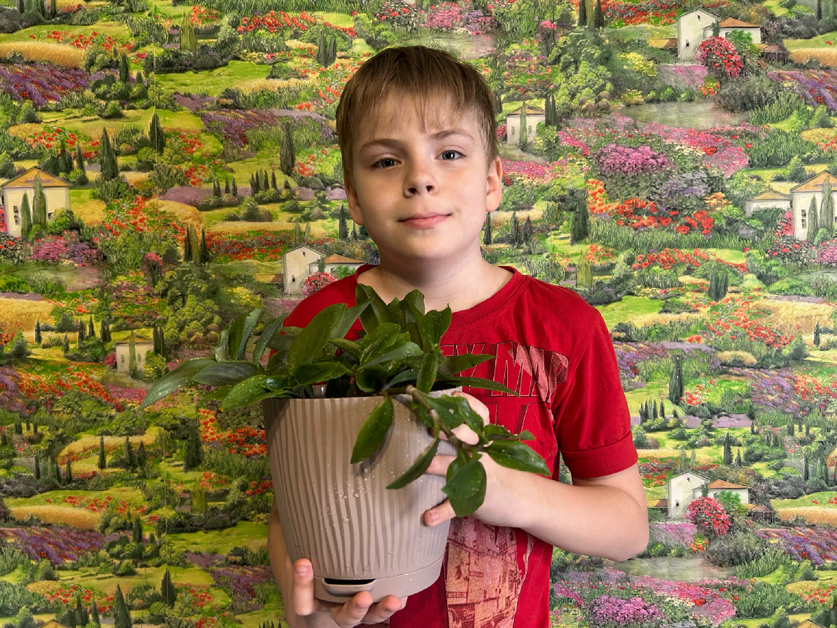 У меня в закрепе в блоге висит эко-акция от Центра саморазвития «Орегор». Суть акции в том, что нужно посадить любое растение, цветок, дерево и поделиться в ВК (подробные правила акции смотрите в закрепленной статье, акция продлится до ноября). Чем больше вокруг нас растений - тем чище воздух и благоприятнее атмосфера на нашей планете. Вот такая добрая инициатива! Костик тоже принимает участие. Вместе со мной сажал традесканцию.