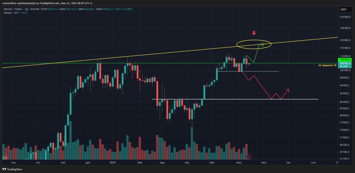 В ответ на пост #BTC 🕯Глобально🕯 Всем привет, коллеги! Традиционный краткий обзор глобальной картинки по итогу завершившейся недели! ⚠️Специально прикрепляю те же графики, что и неделю назад, для понятной последовательности. 1й 3D ТФ, на том же уровне, где был прежде. В прошлом обзоре, я вам говорил о явной манипуляции из 2х 3D свечей, и что мы видим сейчас?, верно, продолжение плясок, практически под копирку, только уже в верхний диапазон от уровня. Тени свечей четко показывают стрижку рынка в обе стороны. Итак, для меня картина продолжает быть позитивной!! ⚠️2й график, недельный ТФ, без разметки, он также есть в прежнем обзоре. Неделя просто вертолётная, что опять же подтверждает мнение с 3D ТФ. Ну и опять же, недельный ТФ оставляет полнейшую неопределенность для участников рынка. Верхней тенью забрали все стопы шортистов, а вот нижняя тень свечи не достала Low прежней, что также отношу к позитиву!! P.s. как говорил прежде, геополитические события являются очень мощным прикрыти