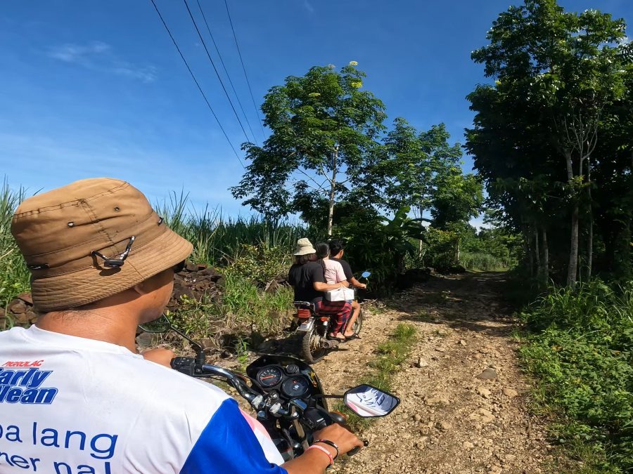 Раннее утро. Мы готовим еду и собраем вещи чтобы отправится небольшое путешествие. Нас пригласили на семейный обед в настоящую филиппинскую деревню посреди гор. Говорят, будет весело. Сначала 15 минут на машине, потом ещё 5 минут по ухабам и оврагам на мотоцикле. Я вцепился в сиденье так, будто от этого зависела жизнь. Впрочем, местами так оно и было. Погода стояла отличная. План мероприятий классический. Готовим шашлыки, куриный суп по местному рецепту, болтаем и собираемся идти купаться в речке. Хозяин фермы решил показать нам свои владения. Это свинарник. В жаркие дни животным постоянно подливают холодную воду чтобы они не перегрелись. На ферме бесчисленное множество кур, циплят и петухов. Также есть несколько коров. Коровы здесь не ради молока. Мы гуляли по территории фермы, наслаждались видами, а потом нас пригласили к столу. После обеда мы пошли на речку. Небо хмурилось. Путь к речке неблизкий. Чтобы сократить дорогу пришлось идти по полям сахарного тросняка, кукурузы и риса. Зе