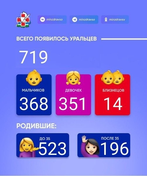 👨👩👧👦 Для сорока свердловчанок это были четвертые по счету роды, для 26 — пятые, для шестерых — шестые, для троих седьмые, еще для троих — восьмые, а для одной из уралочек — девятые.🏅