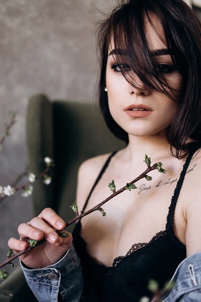 Намалёванная, раскрашенная, вульгарная. С мужчиной.