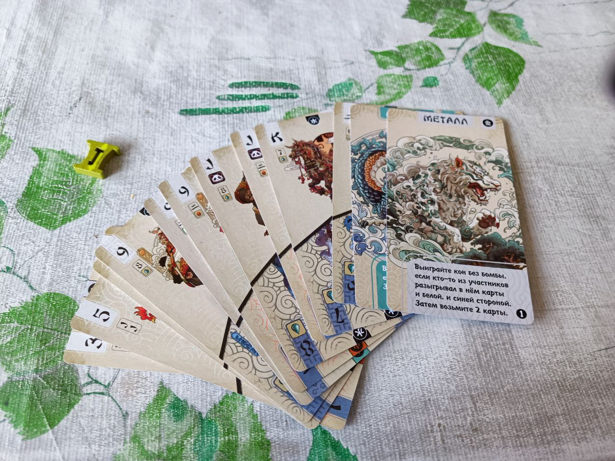 Это очень азартная, но при этом абсолютно рандомная игра. В начале раунда у игроков по 10 карт на руке. В центре стола выложены 4 карты, образующие будущие 4 ряда. Всего в колоде 104 карты с номиналом от 1 до 104. Игроки выкладывают карты в закрытую. После чего карты раскладываются в порядке возрастания в тот ряд, в котором лежит ближайшая меньшая по значению карта. Например, карта со значением 20 ляжет в первый ряд (на фото). А 24 уже во второй. Если карта, которую выложил игрок оказывается шестой в ряду, он берет все пять карт в ряду (кроме той которую выложил только что). А оставшаяся карта образует начало нового ряда. Если игрок не может разместить карту ни в один ряд (например карту со значением 9), он сам выбирает какой ряд забрать, а выложенная карта также образует начало нового ряда.