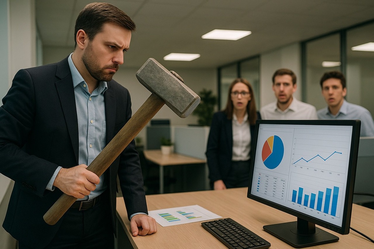 ΠΠ½ΠΈ Π±Π΅ΡΡΡ Π² ΡΡΠΊΠΈ ΡΠ²ΠΎΠΉ Β«ΠΌΠΎΠ»ΠΎΡΠΎΠΊΒ» β Π΅Π΄ΠΈΠ½ΡΡΠ²Π΅Π½Π½ΡΠΉ Π·Π½Π°ΠΊΠΎΠΌΡΠΉ ΠΈΠ½ΡΡΡΡΠΌΠ΅Π½Ρ β ΠΈ Π½Π°ΡΠΈΠ½Π°ΡΡ Π΄ΠΎΠ»Π±ΠΈΡΡ ΠΈΠΌ Π²ΡΡ ΠΏΠΎΠ΄ΡΡΠ΄, Π΄Π°ΠΆΠ΅ Π΅ΡΠ»ΠΈ ΠΏΡΠΎΠ±Π»Π΅ΠΌΠ° Π²ΠΎΠΎΠ±ΡΠ΅ Π½Π΅ Π² ΡΡΠΎΠΌ.