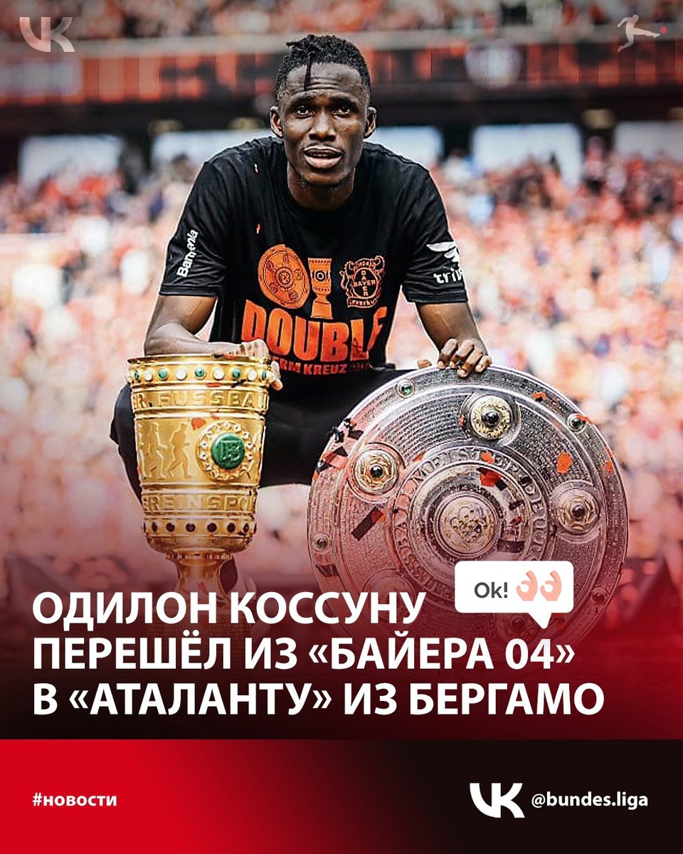 ✅ Одилон Коссуну перешёл из «Байера 04» в итальянский клуб «Аталанта». «Байер» подтвердил переход сегодня после того, как был активирован вариант с покупкой центрального защитника, которого изначально отдали в аренду «Аталанте». 💬 «Одилон был важным игроком нашей команды в самый успешный год в истории клуба. Мы рады, что он смог так хорошо адаптироваться в Бергамо, и желаем ему дальнейших успехов», - сказал спортивный директор «Байера» Саймон Рольфес. 👏 Коссуну, чей контракт с «Байером» был рассчитан до июня 2026 года, выиграл чемпионат Германии, Кубок Германии и Суперкубок в составе клуба в 2024 году.