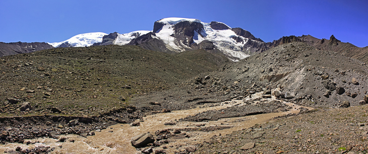 Последний день нашего пребывания в районе нарзанных источников Джилы-Су Карачаевское был вольно прогулочным. Торопиться нам было не куда. Делать особо тоже. Поэтому мы с Сергеем Бабенко решили прогуляться к истокам реки Битик-Тюбе в ущелье к склонам Эльбруса. Сергей Оришкевич решил полежать на берегу, наслаждаясь видами и журчанием реки. Собственно снято в этот день было не мало, но сохранилось еще меньше, оставшись в основном на видео (повторюсь со ссылкой https://dzen.ru/video/watch/67f4ab26d172de1b8d87ad81?collection=author%3Add0d0f1f-d459-4dec-9594-01035d8a9d5c&order=reverse ). Но что осталось, то и осталось. До истоков реки мы добрались относительно быстро. Она ытекала из под морены. лежащей на льду. Кстати, получаю массу удовольствия слушая рекламу воды - "ЧИСТАЯ ВОДА С АЛЬПИЙСКИХ ЛЕДНИКОВ". Очень хочется спросить автора - А ТЫ ХОТЬ РАЗ ВИДЕЛ ЭТУ ВОДУ В РЕАЛЬНОСТИ?? Очень сомневаюсь. Надеюсь что он увидит её хотя бы на нижеследующих фотографиях. Мы перебрались через ре