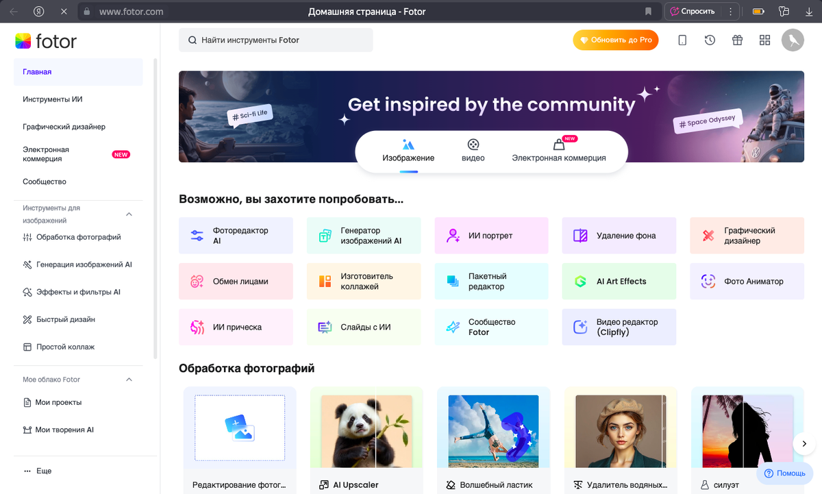 В мире, где даже профессиональные дизайнеры ищут способы ускорить работу, появляются инструменты, способные заменить громоздкие программы вроде Photoshop. Один из таких сервисов — Fotor, который сочетает простоту мобильного приложения с мощью искусственного интеллекта. Fotor — это онлайн-фоторедактор и мобильное приложение, которое позволяет ретушировать изображения, создавать коллажи и даже генерировать картинки с помощью нейросетей. Сервис позиционирует себя как «упрощённый Photoshop», но с акцентом на автоматизацию и ИИ-функции. Fotor умеет автоматически: Всё это делается без ручного выделения — ИИ сам находит нужные зоны на фото. Функция «Вырезание фона» работает так же, как в Photoshop, но без сложных инструментов вроде «Волшебной палочки». Достаточно нажать кнопку — и ИИ отделит объект от заднего плана. А если нужно убрать лишний предмет (например, случайного прохожего на фото), поможет инструмент «Удаление объектов». Fotor предлагает сотни макетов для: Достаточно выбрать шаблон,