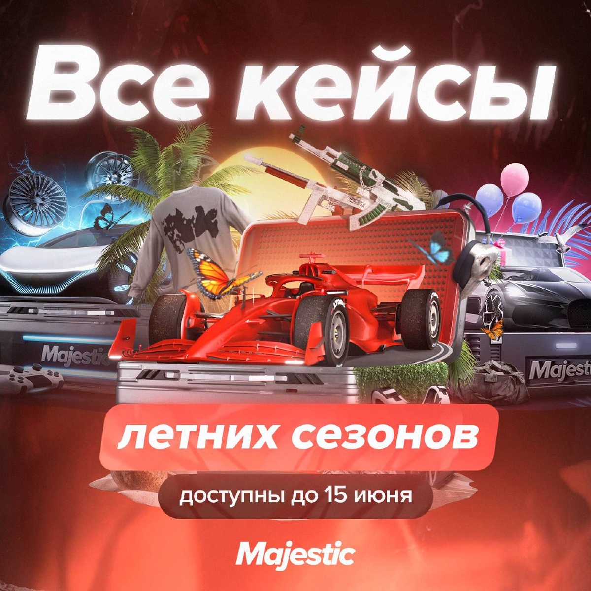 🤫 Летние кейсы прошлых сезонов — для ценителей Эксклюзивный транспорт, скины, одежда, анимации и многое другое из прошлых летних коллекций доступны в игре! Получить уникальные предметы можно в «F2 — Магазин — Кейсы» только до 15 июня включительно. ❤️ Majestic Role Play