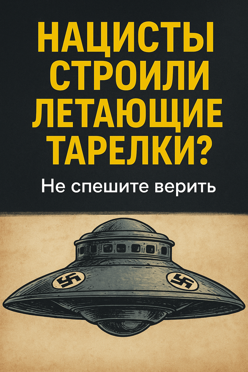 – подлодки нового поколения. 🧠 Это породило массу домыслов: «А что, если у них были и технологии будущего, о которых мы не знаем?» На этом страхе и вырос миф о “летающих тарелках Третьего рейха”. 📌 В 1950-х в США и Европе начали выходить книги с кричащими названиями: «Нацистские технологии будущего»,