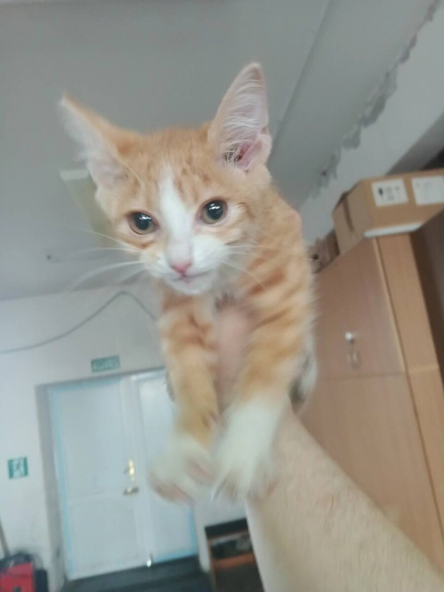 На предприятие подкинули котенка, оставлять там нельзя. У малыша что то с задними лапками, на улице погибнет.