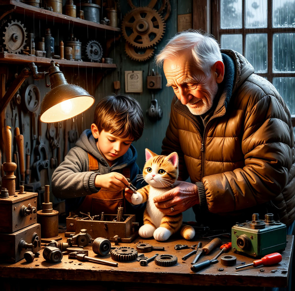 Город просыпался неохотно: мутные огоньки устало мигали в окнах, а серая, тяжёлая дымка казалась живой и ворчливой. Каждый маленький дом будто зевал и поскрипывал старыми ставнями, стряхивая остатки ночного сна. Лёва, сутулый восьмиклассник в куртке на несколько размеров больше, пробирался по разбитому тротуару к мастерской деда. Здесь, среди железных деталей и запаха масла, у него всегда начиналось утро. В грязном дворе уже маячил знакомый силуэт – высокий, костлявый, в поношенном телогрейке. Дед стоял у верстака, перебирал коробку с болтами. Он кивнул внуку: