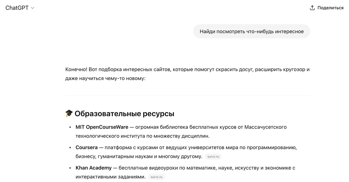 Неправильным будет писать короткие, неконкретные и расплывчатые промпты. Например, запрос «Найди посмотреть что-нибудь интересное» вряд ли даст качественный результат.