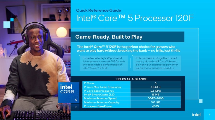 В сеть утекли спецификации нового процессора Intel Core 5 120F из бюджетной линейки Bartlett Lake. Чип получил 6 производительных ядер с поддержкой Hyper-Threading, 18 МБ L3-кэша и TDP 65 Вт — как у Core i5-12400F. Главное отличие — повышенная максимальная частота: до 4,5 ГГц. Процессор предназначен для сокета LGA1700. В линейке также ожидаются более мощные модели Core 7 и Core 9 с числом P-ядер до 12 — они ориентированы как на потребительский, так и на промышленный сегмент.