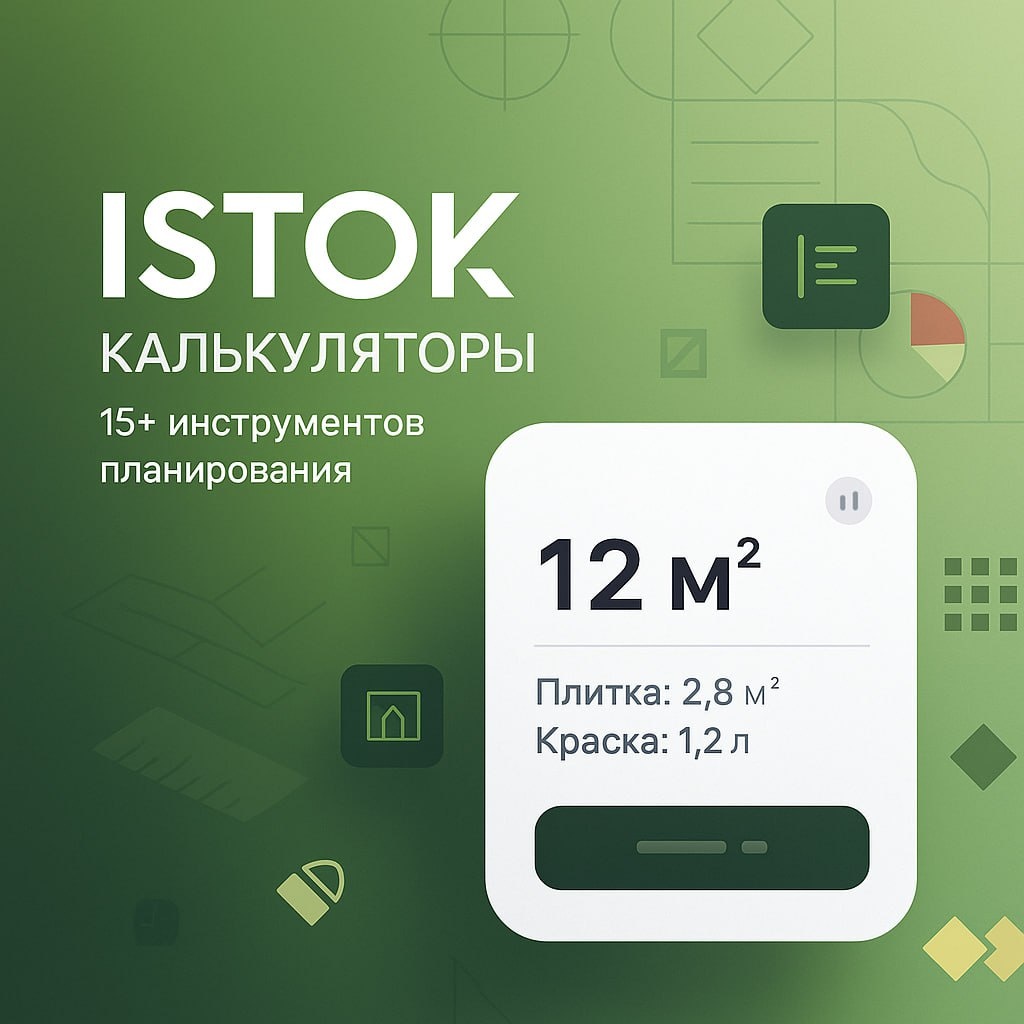 Новинка от ISTOK: Онлайн калькуляторы для ремонта и мебели! Забудьте о сложных расчётах и ошибках в планировании! 🎯 ✨ Что внутри: • 15 точных калькуляторов • Мгновенный результат без регистрации • Расчёт материалов, эргономики, освещения • Профессиональные инструменты — бесплатно! 💡 Просто введите размеры — получите точный расчёт материалов, стоимости и рекомендации от экспертов. 🚀 Экосистема ISTOK растёт: Калькуляторы → ISTOK PRO → 3D Lab → нейроИнтерьер Попробуйте прямо сейчас! 👇🏻 https://istok-mebel.ru/instrumenty