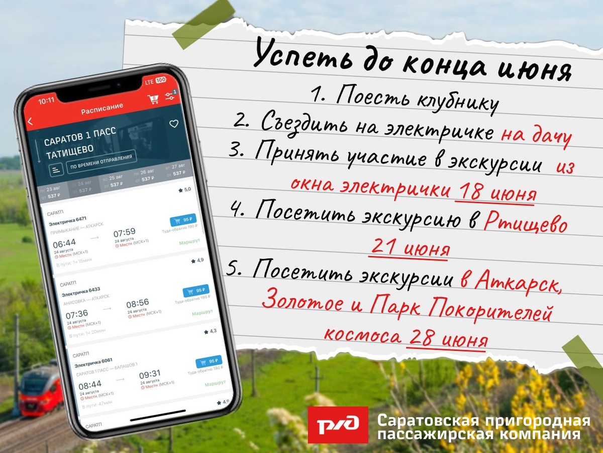 Первая половина июня уже пролетела, но это не повод унывать, а самое время ехать на экскурсионные проекты АО "Саратовская ППК