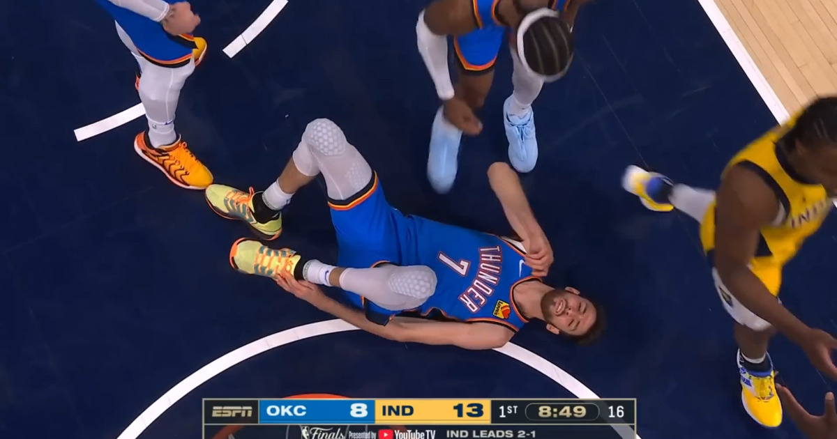 Защитник «Индианы» Тайриз Халибертон реализовал сверхдальний бросок на 3-й минуте 4-го матча финала. Спустя полминуты форвард «Пэйсерс» Паскаль Сиакам и центровой «Тандер» Чет Холмгрен налетели друг на друга стопами, в результате чего Холмгрен подвернул голеностоп и упал на паркет. «Ты как? Уверен? Давай вставай, ты нам нужен!» – обратился к лежащему партнеру по команде защитник Шэй Гилджес-Александер. Чет Холмгрен смог продолжить встречу и по ее итогам отметился 14 очками, 15 подборами, 1 передачей, 1 перехватом и 1 блок-шотом. «Тандер» сравняли счет в серии (2-2), победив в матче – 111:104.