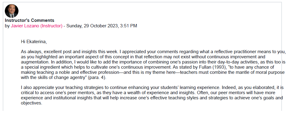 "Teachers are reflexive practitioners" means to me that mistakes were, are and will be before, during and after the lesson. I cannot be absolutely sure that tomorrow will be exactly the same as yesterday. I can only learn to adapt to new conditions and look for ways to solve situations. And as a result, I still have four out of six students with me who have accepted me and the new rules of the game. This gives me a sense of satisfaction. It gives me strength and motivation to go on.