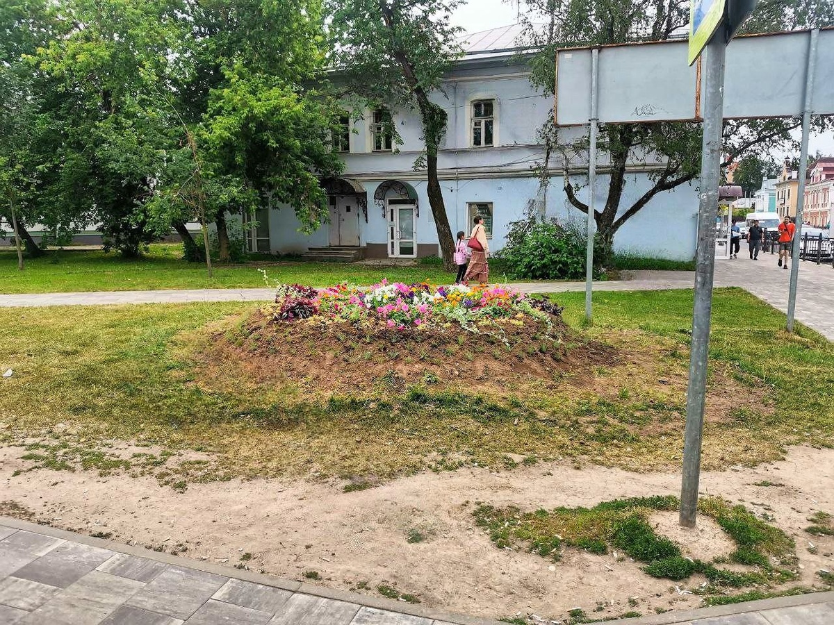 «На памятник с оградкой уже не хватило»,— так комментируют жители подмосковного Сергиева Посада вид новой клумбы на Кооперативной улице. Коммунальщики ее уже убирают😋