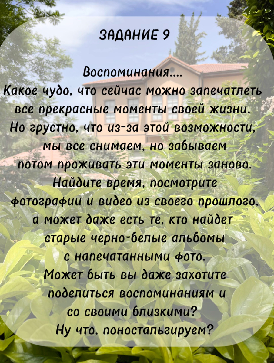 За окном погода совсем не радует. Хочется остаться дома, налить себе горячего чая, взять сладости в придачу и погрузиться в умиротворение))) Предлагаю добавить щепотку ностальгии в этот уютный момент, предаться воспоминаниям и окунуться в прошлое. Доставайте свои старые альбомы с фотографиями, включайте свои архивные видеозаписи и проживайте прошлое заново. Приятного вам дня и вечера )))