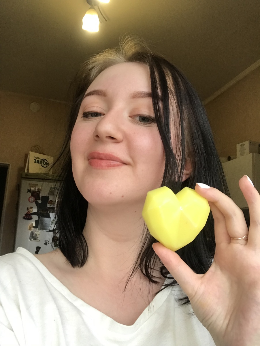 Жёлтое, в форме сердечка. И... подозрительно похожее на картошку. Особенно сбоку. Но знаете, тогда мне казалось, что я сделала нечто великое. Я сама растопила основу, окрасила, залила и — о боги — достала целый кусок мыла из формы. Это ли не чудо? Всё чаще я вижу, как новички боятся пробовать, потому что боятся сразу не идеально. Боятся, что "не получится", "будет стыдно", "на фото не такое красивое, как у других". Но, честно?