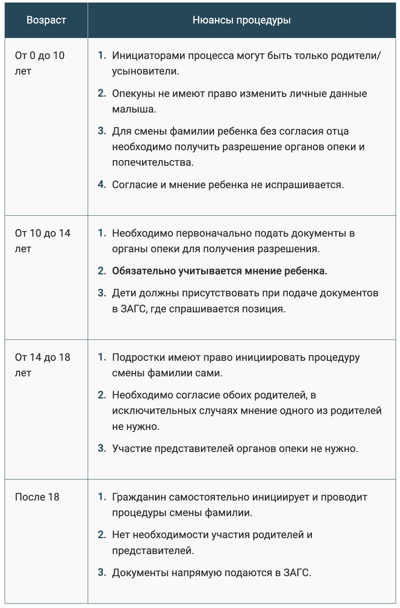 Независимо от возраста, когда речь идет о несовершеннолетнем ребенке, при смене фамилии сотрудники ЗАГСа и органов опеки должны действовать в интересах детей.