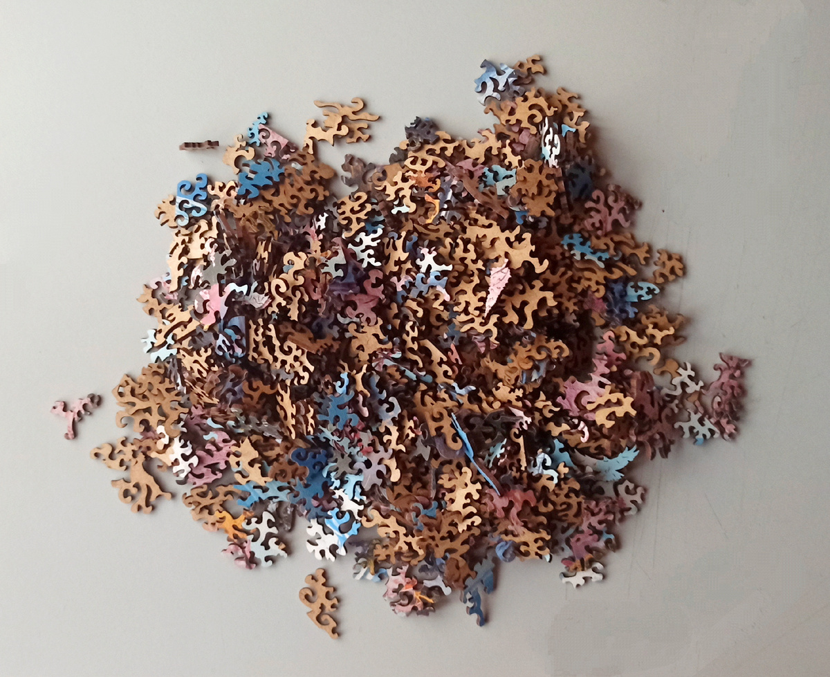 Лето для меня - период не просто отдыха, а перезагрузки. В отпуске много читаю художественной литературы и занимаюсь творчеством, особенно люблю алмазную мозаику и деревянные пазлы. О существовании деревянных пазлов для взрослых узнала от своей воспитанницы, когда получила в подарок оригинального зайчика в красивой рамке, писала об этом здесь👇 С тех пор и увлеклась ими. Для меня это процесс на один раз: я собираю пазл, склеиваю детали и помещаю готовую картину в рамку. Потом поделка отправляется на стену в дачном доме. В этом году не изменила своей традиции и купила очередную заветную коробочку. В коробочке, помимо деревянных деталей, есть инструкция для помощи в сборке (если возникают затруднения). Я не пользуюсь - интересно собрать полностью самой. Люблю собирать пазл неторопливо, растягивая удовольствие. Раскладываю детали обычно по кучкам по цветам: в данном случае - розовая, голубая, тёмная. Крышка от коробки - ещё и образец. Для неё есть специальная подставка. Когда ра