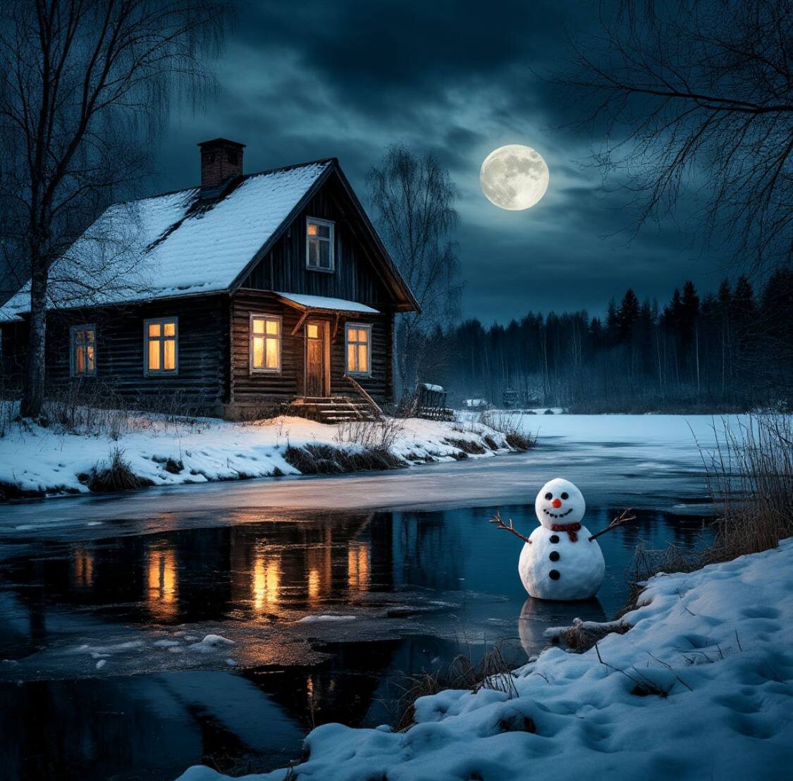 Когда темный силуэт вышел на мощеную дорогу, следом за ним двинулся снеговик, который стоял около того домика.