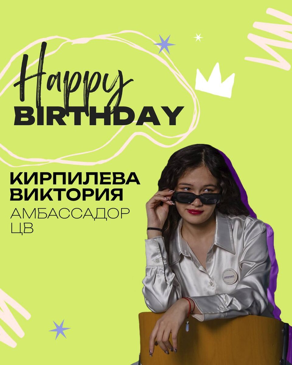Сегодня свой день рождения отмечает потрясающая Виктория Кирпилёва!🎉 Мы поздравляем её с этим чудесным днём и желаем быть всегда наполненной радостью, вдохновением и оставаться такой же яркой и энергичной! С любовью, твоя команда Центра волонтеров ВВГУ🤍