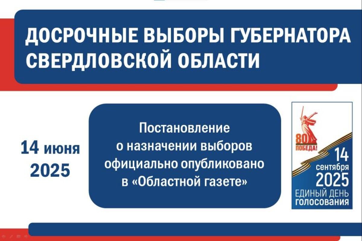 Постановление о назначении досрочных выборов губернатора Свердловской области опубликовало Законодательное собрание региона. Заксобрание Свердловской области утвердило дату проведения досрочных выборов высшего должностного лица региона. Постановление за подписью спикера парламента Людмилы Бабушкиной опубликовано в сборнике правовой информации. «Назначить досрочные выборы губернатора Свердловской области на 14 сентября 2025 года. Настоящее Постановление вступает в силу со дня его официального опубликования», — говорится в документе. Выдвигать кандидатов на должность губернатора Свердловской области могут только политические партии.
