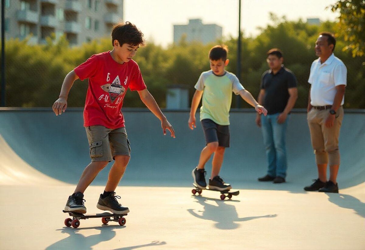 1. На площадке 3 мальчика лет 10-12 на самокатах, лениво скатываются "в чашу" и мотаются там туда-сюда, разговаривая.