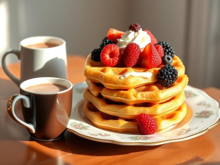 Восхитительные вафли с ягодами и взбитыми сливками — утреннее удовольствие!