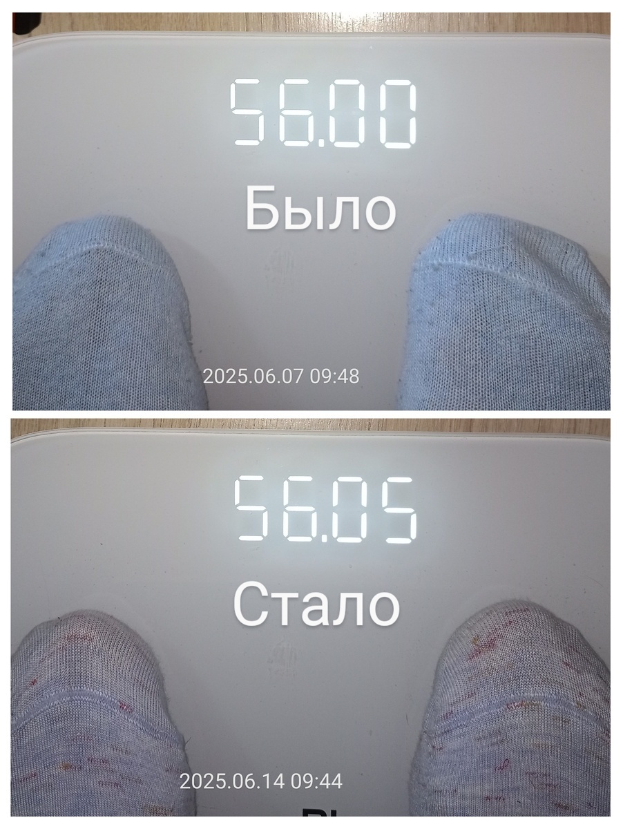118-е очередное субботнее взвешивание | Хронометраж похудения с 82 кг Всем привет! С Вами Татьяна, пенсионерка. Мне 74 года, рост 151 см, вес 56 кг ✅ 27.02.23 мой вес был 82 кг. В процессе своего похудения за 2 года сбросила 25 кг лишнего веса. Цель - нормальный вес 55-56 кг, так как при моем росте 151 см 57 кг для меня избыточный вес. *** За прошедшую неделю вес не изменился **************************** 7.06.25 было 56 кг 14.06.25 стало 56,05 кг