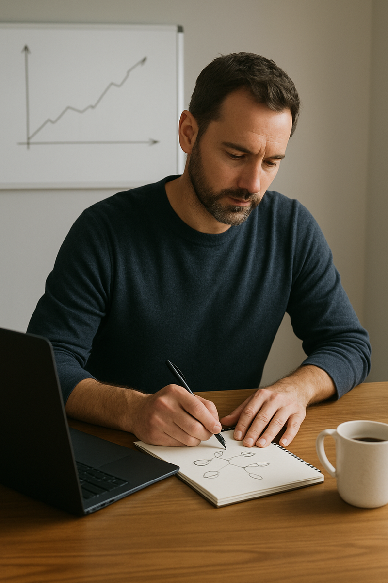 (из второй части серии «Я и нейросеть: архитектура новой жизни») «Когда ты устаёшь от хаоса, ты начинаешь искать не очередную палочку-выручалочку, а фундамент. Не способ выкрутиться — а способ выстроить.» Сегодня я снова прокрутил старый сценарий. Планы, задачи, хаос в голове. Всё срочно, всё важно. Начал день с мыслью: «Надо срочно решить это, это, и это…» — и уже через час почувствовал, как голова гудит. Я сел. Выключил телефон. Открыл пустой лист.