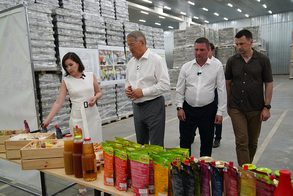 Глава Башкирии посетил сегодня, 14 июня, предприятие «Пищепром», расположенное в Буздякском районе, сообщает пресс-служба руководителя региона. Компания специализируется на изготовлении соусов и полуфабрикатов, а ее продукция представлена не только в России, но и экспортируется в Казахстан, Узбекистан, Беларусь, Кыргызстан и Китай. Исполнительный директор «Пищепрома» Гузель Козлова рассказала, что при поддержке республики предприятию была выделена земля для дальнейшего развития, в планах — возведение нового цеха площадью восемь тысяч «квадратов». Радий Хабиров ознакомился с технологией изготовления продукции, поддержал инициативы «Пищепрома» и пригласил руководство компании принять участие в республиканском «Инвестчасе» для предоставления мер господдержки. Глава республики в беседе с журналистами сказал, что предприятие работает много лет и очень здорово, что есть планы по его дальнейшему развитию. «Представленный проект — плод нашей совместной работы. Он позволит удвоить объёмы выпуск