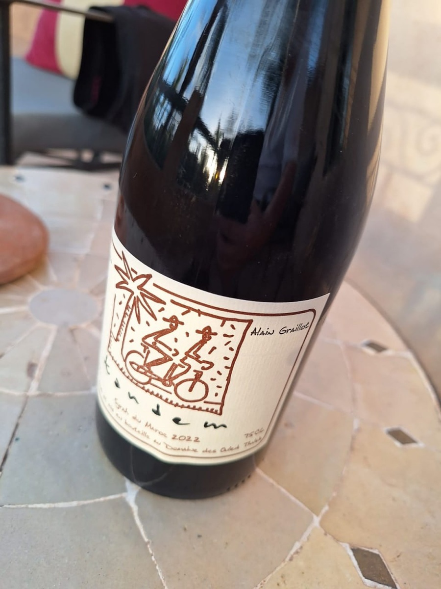 Domaine des Ouled Thaleb - Tandem Syrah du Maroc 2022 Поскольку широта Марокко такая же как у юга Австралии, но в северном полушарии, то совершенно логично, что главный местный сорт винограда для красных вин - Сира! И надо сказать вино очень хорошее. Бочковая выдержка раскрасила ягодные тона сиры и придала им основательности. У вина отличная кислотность - она явно бодрее и веселее французской сиры из Южной Роны. Но несколько гуще и тельнее, чем сира из Северной Роны. Я не случайно сравниваю вино с такими серьезными величинами в мире сиры! Отличная летящая кислотность! Я никак точно не ожидал встретить такое вино рядом с Сахарой! В остальном во вкусе черная слива, ежевика, черный перец и на послевкусии тона шоколада от бочки. Танины есть, но сглажены. Крепость умеренная 13,5%. Опять же в южном вине я удивлен, опасался, что будет крепче. По совокупности, пьется легко, с ежой сочетается очень хорошо. Ценник в местном Перекрестке примерно 1700-1800 рублей. Будете в Марокко - пробуйте. Оно