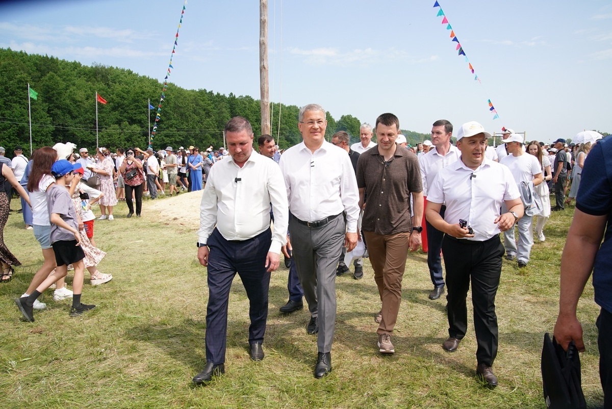 Глава Башкортостана Радий Хабиров во время рабочей поездки в Буздякский район принял участие в районном сабантуе. Руководитель региона поздравил тружеников села с успешным окончанием весенне-полевых работ, вручил передовикам производства государственные награды республики, сообщает «Башинформ». Также жителей района с праздником плуга зампредседателя правительства – министр здравоохранения Московской области Максим Забелин. Радий Хабиров и Максим Забелин после торжественного открытия посетили спортивные площадки сабантуя и понаблюдали за соревнованиями по национальной борьбе курэш. Глава Башкирии за чашкой чая пообщался с участниками и ветеранами СВО. Также на встрече присутствовали родители бойца Рамиля Мустафина, который сегодня проходит реабилитацию в Центральном военно-клиническом госпитале имени Вишневского. За самоотверженность, мужество и отвагу при исполнении воинского долга Указом Президента РФ Рамиль Мустафин награжден орденом Мужества и медалью Суворова в 2023 году. В 2024 г
