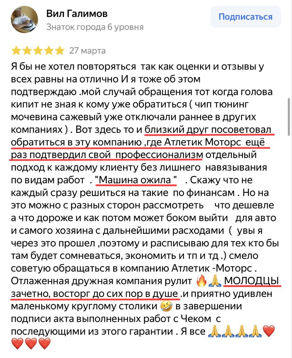 ❤️ ОТЗЫВ ВЛАДЕЛЬЦА HYUNDAI SANTA FE 2.0D ИЗ БУГУЛЬМЫ Владелец приезжал к нам на комплекс: - чистка впуска - отключение EGR - увеличение мощности С автомобилем работал мастер Азат. Вил, благодарим за доверие и обратную связь! 🙂 Больше отзывов о нас можно почитать: 📍 на Яндекс 📍 в 2ГИС Мы работаем по записи: Написать нам в WA +79033054194 Оставить заявку здесь