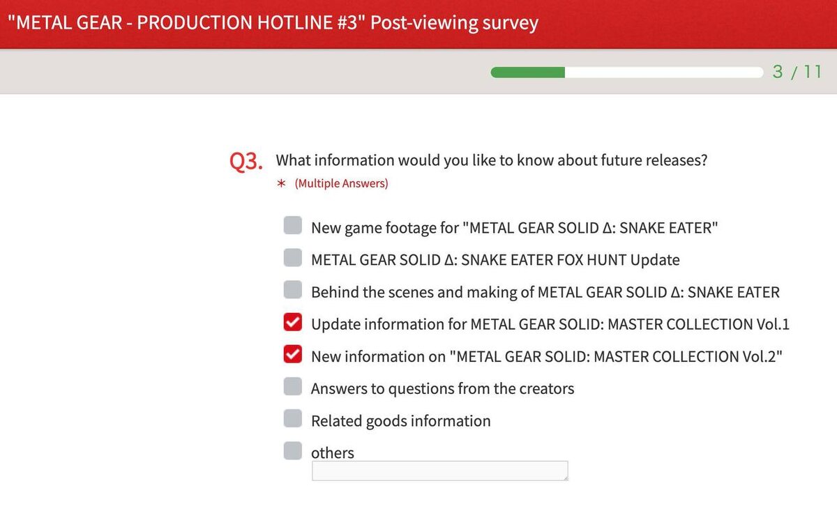Второй сборник Metal Gear Solid упоминается в опроснике Konami по итогам недавней презентации Metal Gear