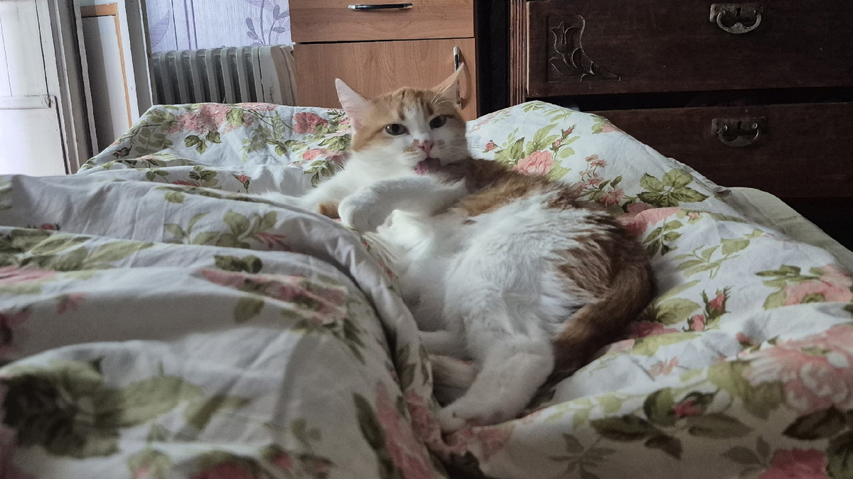 Легла вчера пораньше, просто потому, что по дому делать ничего не хотелось, а работы нет. Просыпалась утром несколько раз, но пошел сильный дождь и я решила не вставать, ведь под него так спать хорошо. Часов 11, в общем, провела в постели и ни о чем не жалею. И сны снились разные. То мы с компанией где-то гуляем и нам очень весело, то мы устроились на ночлег где-то и со мной лежит странный парень. Он рассказывает мне, что любит трогать все языком и я понимаю, что он человек-змея. На всякий случай ухожу от него гулять и вижу горящие кусты на улице. Начинаю искать воду, но мне попадается то жидкость для розжига, то какие-то косметические средства, я не рискую. Так и не нашла. Начал сгибаться палец. Кулак пока не сжать, но уже что-то. Делаем с кошью домашние дела: стираем, моем посуду, кашу сварили. Стирали вручную. Шубу замочила. После стирки станет ясно, спасать ее или купить новую. Вроде, на танцы собираюсь сегодня, но это не точно: не знаю, что надеть, непонятно, что с погодой, с сос