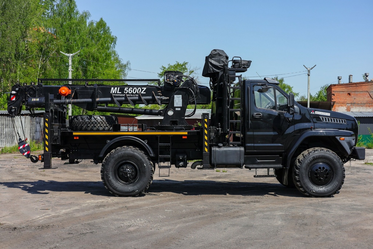 Компания «Мега Драйв» представила бурильно-крановую машину (БКМ) ML5600Z полностью российского производства. Модель построена на шасси Урал-Next 43206 (4×4), оснащена двигателем ЯМЗ-535 (238 л.с.) и рассчитана на груз до 6 тонн. Машина компактна, маневренна и обладает высокой проходимостью. БКМ совмещает бурильное и крановое оборудование с гидроприводом. Максимальный вылет стрелы — 13 м, грузоподъемность — до 500 кг при полном вылете, глубина бурения — до 8 м, диаметр — от 100 до 1000 мм, зона работы — 360°. Вся техника, включая кран Megalift, систему управления, бур и шасси — отечественного производства. В ближайшее время БКМ будет включена в реестр Минпромторга как полностью российская разработка. Машина участвует в летнем автопробеге по 33 городам. Уже прошли презентации в Ставрополе и Краснодаре, далее — Ростов и Волгоград. Новый Урал-80 4×4: автозавод «Урал» представил вахтовый автобус и автоподъемник на COMvex-2025 «Урал-80» вышел в серию: в России дали старт производству нового