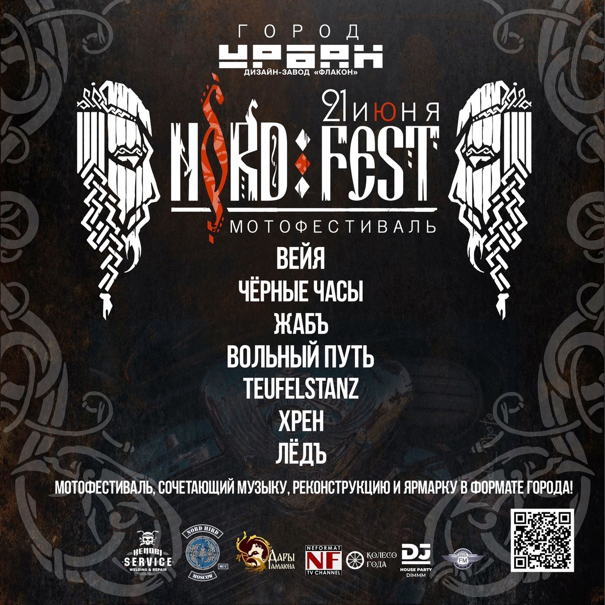🔁 Дальняк.рф™: ❤️🔥 Nord Fest 2025 быть!!! ❤️🔥 Формат Город, место Urban, дата 21 июня! Сохраняйте себе, делитесь с друзьями и на своих страничках - просим максимальный репост 🙏🏻 Даже если вы не сможете быть лично, вы можете поддержать нас информационно 🫶🏻 Мы нашли площадку, которая поддержала нашу идею и позволит сохранить дух и атмосферу Nord Fest 💥 Что будет? ⚡️ 7 фолк-рок-металл групп на сцене ᛝ ВЕЙЯ ᛝ, ЧЁРНЫЕ ЧАСЫ, ЖаБЪ, Фолк-Рок группа Вольный Путь, TEUFELSTANZ, Хрен | khren metal и ЛЁДЪ! ⚡️Реконструкция эпохи IX–XI веков: Древняя Русь и Скандинавия оживают в ремёслах, мастер-классах, ярмарке, конкрусах и показательных выступлениях NORD FEST — музыкальный мотофестиваль с духом этники, истории и мотоциклетной свободы в городском формате в концертном пространстве Урбан и на улице вокруг него! В связи с невозможностью провести запланированные 3 дня на анонсированной ранее площадке, в 2025 году фестиваль пройдет одним днём, но с сохранением духа, атмосферы и идеи фести