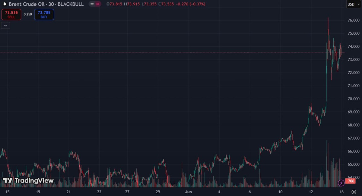 В ночь на 13 июня Израиль нанёс удары по объектам, связанным с иранской ядерной программой. На фоне этого в рост пошел ключевой защитный актив - золото. А более весомый эффект от обострения получила нефть марки Brent, которая в моменте подскочила свыше 12%. Иран в ответ на атаку отправил по Израилю порядка 100 баллистических ракет. Многие СМИ пишут, что обмен ударами будет продолжаться. 🛢 Brent: 73,535 (+5,72%) 🔅 Gold: 3,432 (+1,37%) Также нельзя пройти мимо слов экспертов JPMorgan, которые предупреждают, что цены на нефть могут подскочить до $130 за баррель блокады потоков через Ормузский пролив или ещё большего обострения ситуации на Ближнем Востоке. Для нашего рынка эти события скорее нейтральные. Посмотрим, как долго продлиться конфронтация и до какого уровня смогут задрать нефть. Всем хороших выходных🤝