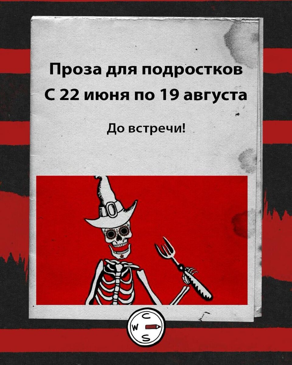 Вы спрашиваете — мы отвечаем! Собрали самые часто задаваемые вопросы об онлайн-курсе «Проза для подростков», на котором мы уже с 22 июня вместе с самыми юными студентами CWS начнем работать над структурой и сюжетом рассказов, оживлять героев, давать им голоса, создавать и разрешать конфликты — а потом редактировать свои тексты. Осталось добавить еще одну полезную ссылку — на нашу «Пашню», где мы публикуем работы выпускников курса. А если вопросы остались, мы с радостью ответим на них и в комментариях к этому посту, и в чатах поддержки в Telegram / WhatsApp. До встречи на курсе!