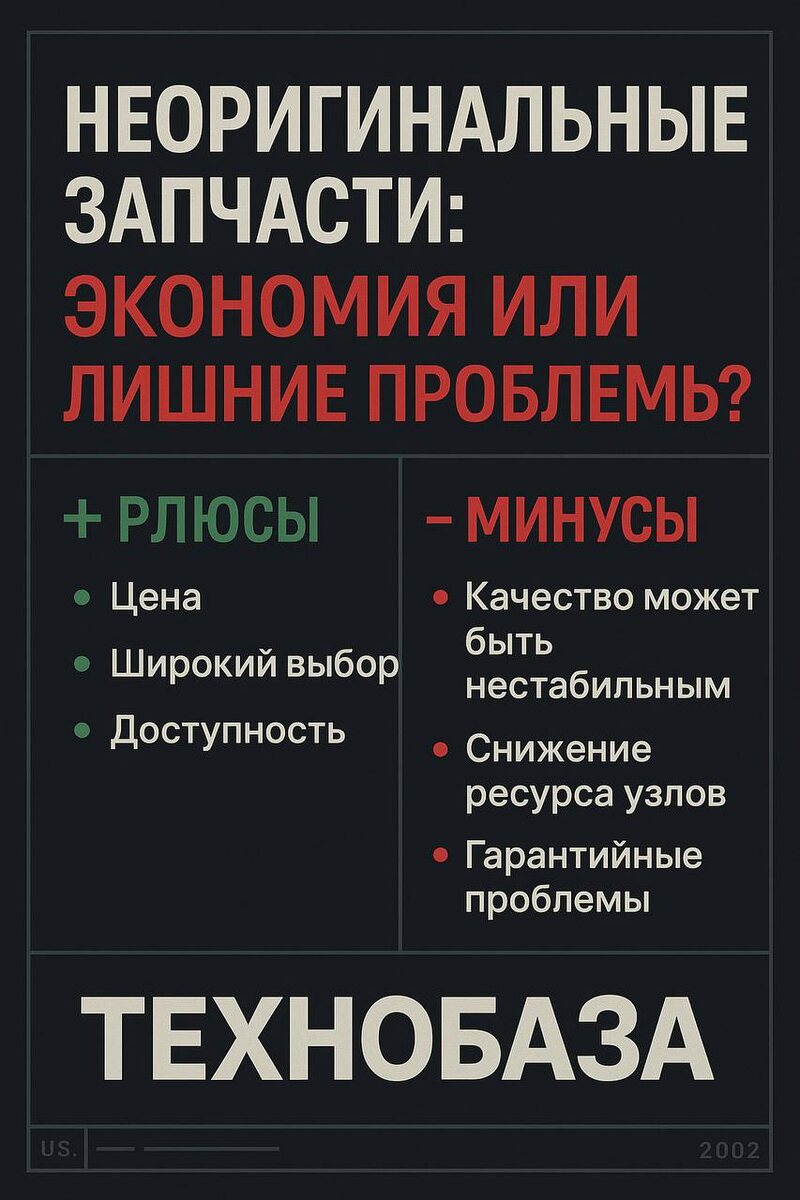 🔧 Неоригинальные запчасти: когда можно, а когда — точно не стоит Каждый автовладелец рано или поздно сталкивается с ремонтом. И тут всплывает главный вопрос: ставить оригинал или сэкономить на аналоге? Разберёмся по фактам, без мифов и маркетинга. ⸻ 🛒 Что такое неоригинальные запчасти? Это детали, которые не производятся самим автоконцерном (например, VAG или Toyota), но подходят по техническим характеристикам. Их делают сторонние бренды — от глобальных (Bosch, Mahle, Lemförder) до совсем ноунеймов с AliExpress. Такие детали делятся на категории: 1. OEM (Original Equipment Manufacturer) — те же, что и оригинальные, просто без логотипа бренда. Часто делают те же заводы. 2. Аналоги высокого качества — известные бренды, которые производят запасные части по чертежам, максимально близким к оригиналу. 3. Бюджетные аналоги — дешёвые детали с компромиссами по материалам и точности. 4. Откровенный «noname» — как правило, это лотерея и экономия «до первого ДТП». ⸻ ✅ Когда можно брать не